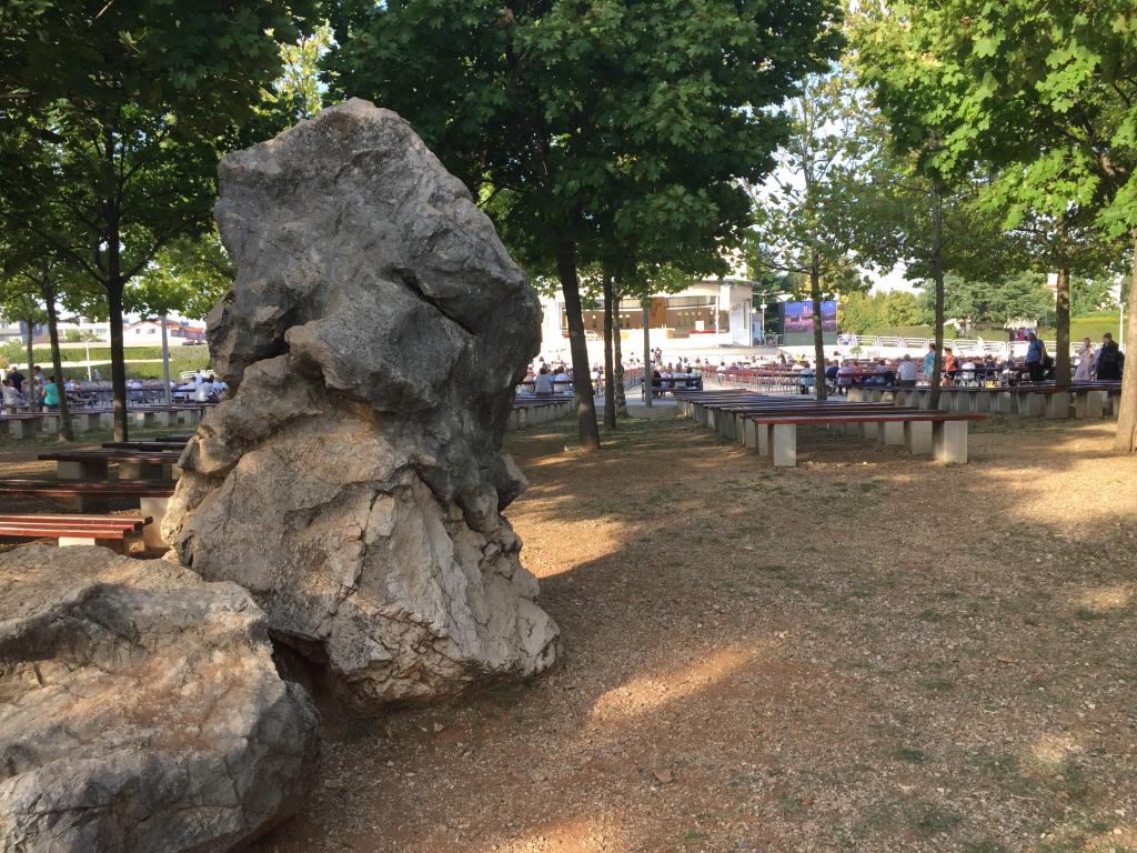 I will show you the spot outside (near the “big rock”) where I can be found during the evening prayer program and Mass. You can either join me in that area, or sit wherever you like and come after the evening Mass. From there, we can head together to the restaurant for our evening meal.