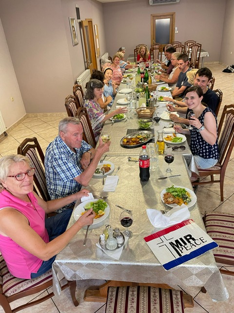 We will have, on most of the days, our breakfast and lunch together at our guest home at Ivanka’s. We will have our evening meals in a restaurant near the church. Breakfast is served buffet style- with breads, cheeses, cold cuts, jams, eggs, cereals, fruit, coffee, tea & juice. The main midday meal is offered family style. Soup is usually served first, followed by large platters of meat or fish, potatoes or rice, cooked vegetables, and fresh salads. The foods are all local and organic, much of it from the backyard garden.